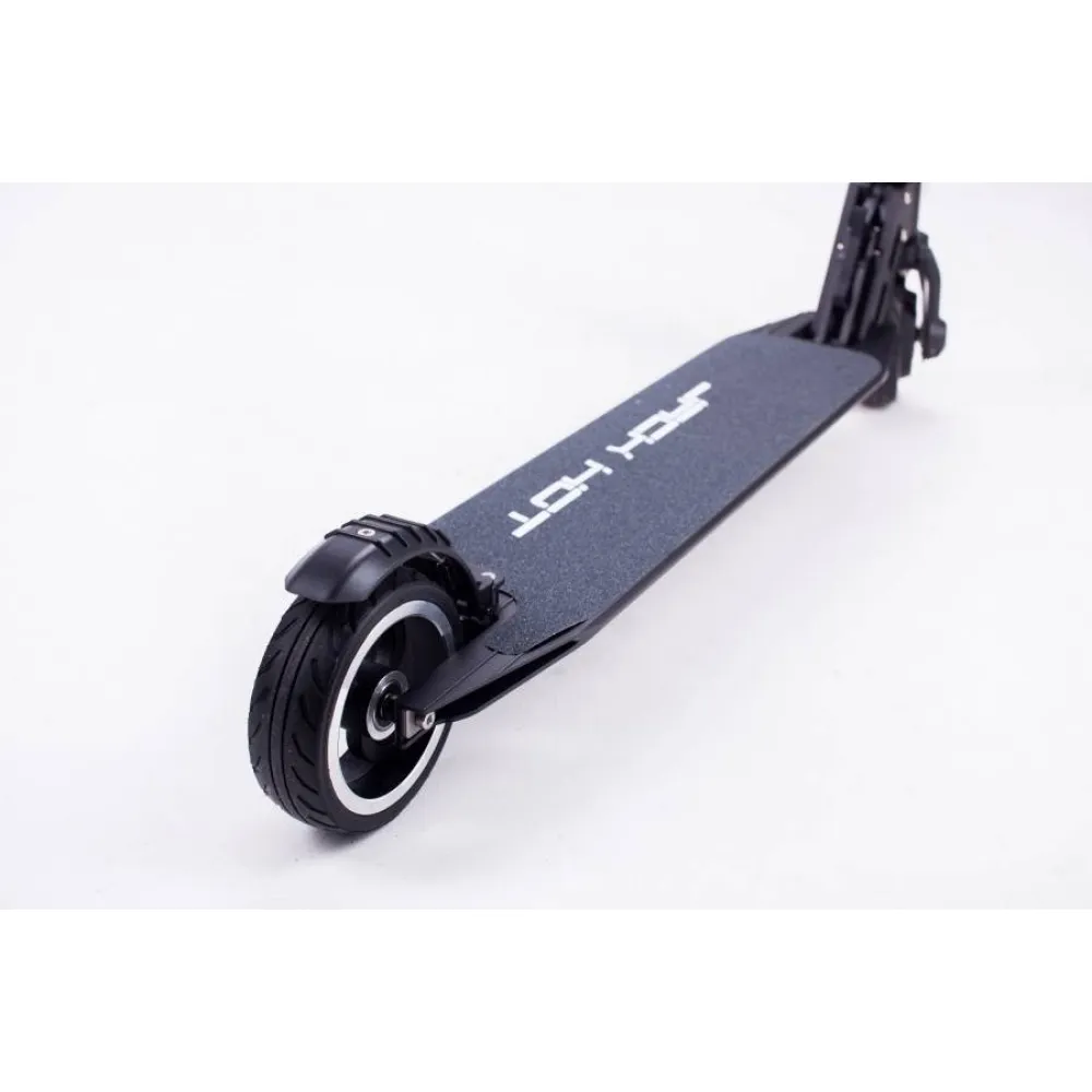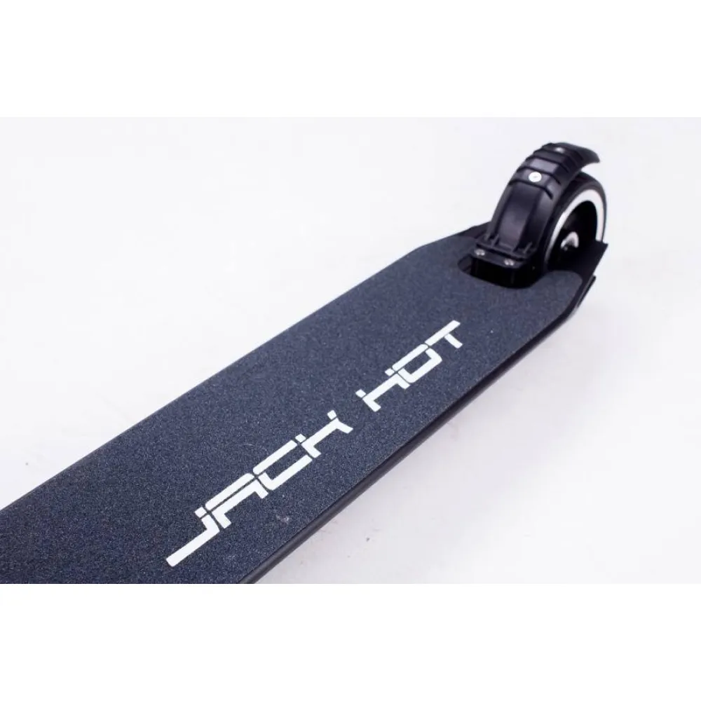 Отличительная особенность электросамоката от обычного самоката – встроенный электромотор, благодаря которому устройство способно развивать большую скорость, а вы не будете уставать во время поездок. Jack Hot AL не нужен бензин, источником энергии для него служит электричество – электросамокат заряжается от обычной электросети, и при полной разрядке аккумулятора, его емкость восстанавливается в течение нескольких часов.