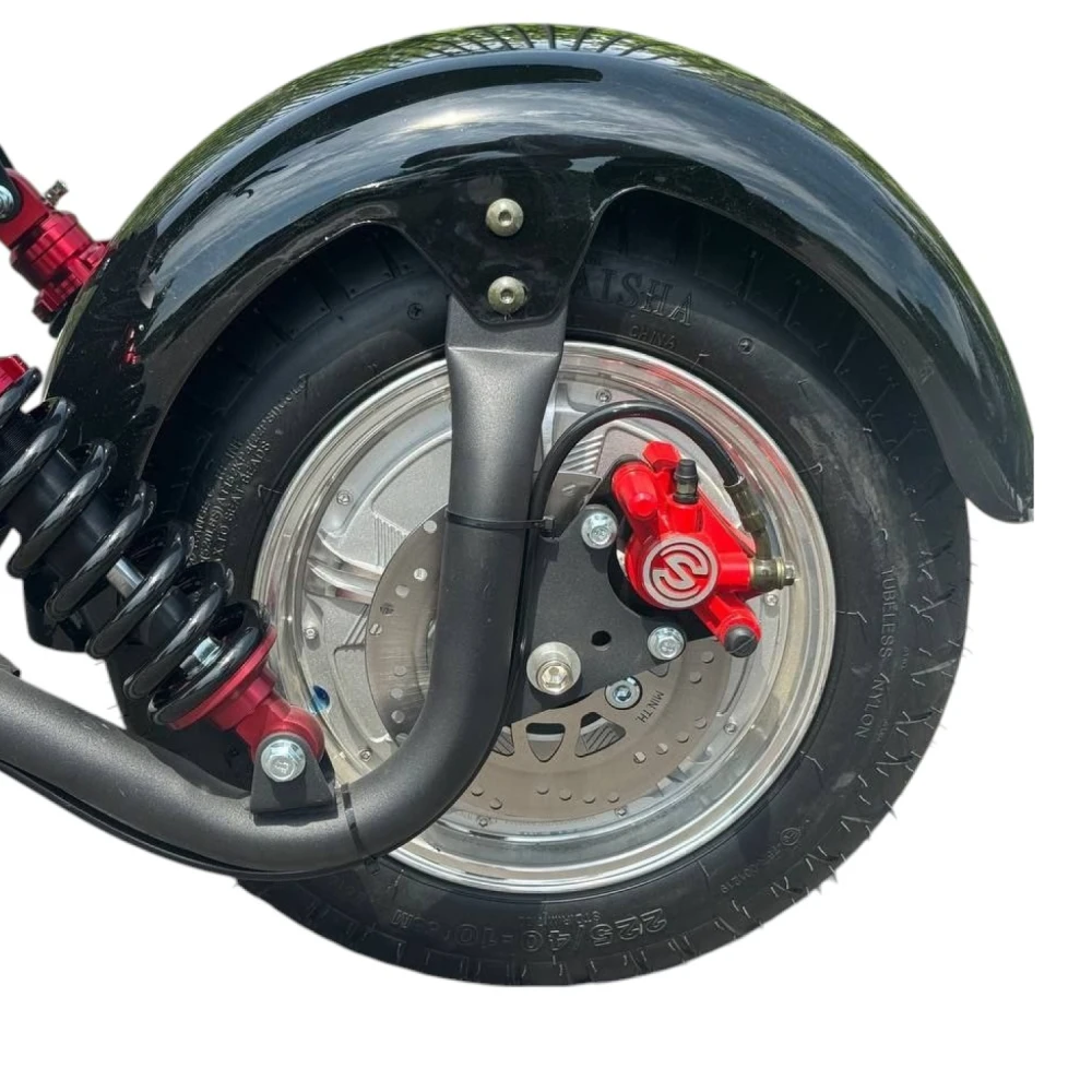 А чтобы обеспечить безопасность во время движения, скутер оснащен гидравлическими дисковыми тормозами спереди и сзади. Это гарантирует надежное и эффективное торможение даже при высокой скорости.