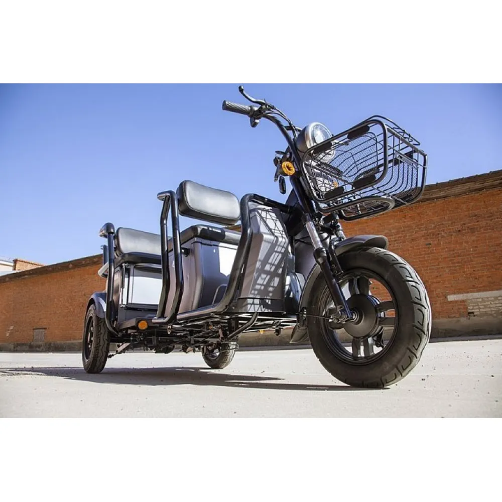 Модель оснащена новым электромотором, способным развить скорость до 25 км/час и проехать на одной подзарядке до 30 км пути. При этом следует знать тяговое АКБ в комплектацию не входит. Мягкие комфортные сиденья напоминают диван, изготовлены из премиум материала, готовым показать пассажирам высокий уровень комфорта. При необходимости водитель может трансформировать заднее сиденье превратив его в грузовой отсек для транспортировки вещей.