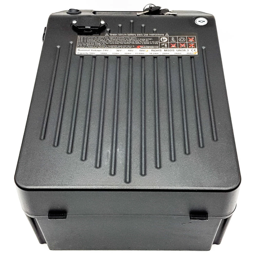 Батарея 40a/h 60v SKYBOARD 4000 FAST популярный на отечественном рынке товар, лидер продаж этого сезона. Представлен компактными эргономичными формами. Изготовлена из высокоударного пластика, сохраняющего первоначальные характеристики при эксплуатации в жестких условиях. БМС плата с защитой от перегрева, разряда и перезаряда. Количество ячеек формата – 26800. Изделие оснащено плотной термо-усадочной пленкой, имеет защиту от перегрева и дополнительный предохранитель формата МАКСИ на 60А. Ручка для транспортировки АКБ увеличивает степень комфорта и удобства. Для оформления заказа предлагаем позвонить менеджеру интернет-магазина.